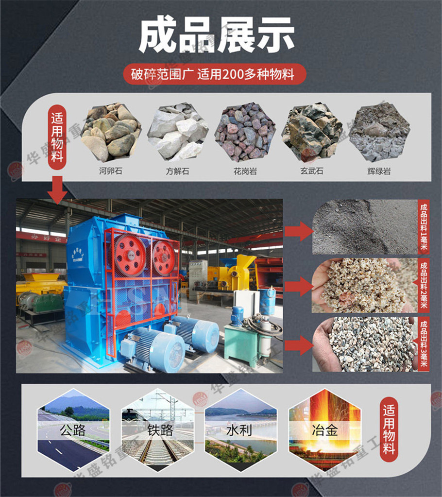 四輥破碎機(jī)物料進(jìn)入上面兩輥V型破碎腔以后,受到上兩輥相對(duì)旋轉(zhuǎn)的擠壓力作用,將物料擠軋和嚙磨后再進(jìn)入相對(duì)旋轉(zhuǎn)的中間兩輥,利用中間兩輥的擠壓力進(jìn)行二次擠軋和細(xì)破后,然后進(jìn)入下兩輥破碎成需要的粒度由輸送設(shè)備送出。